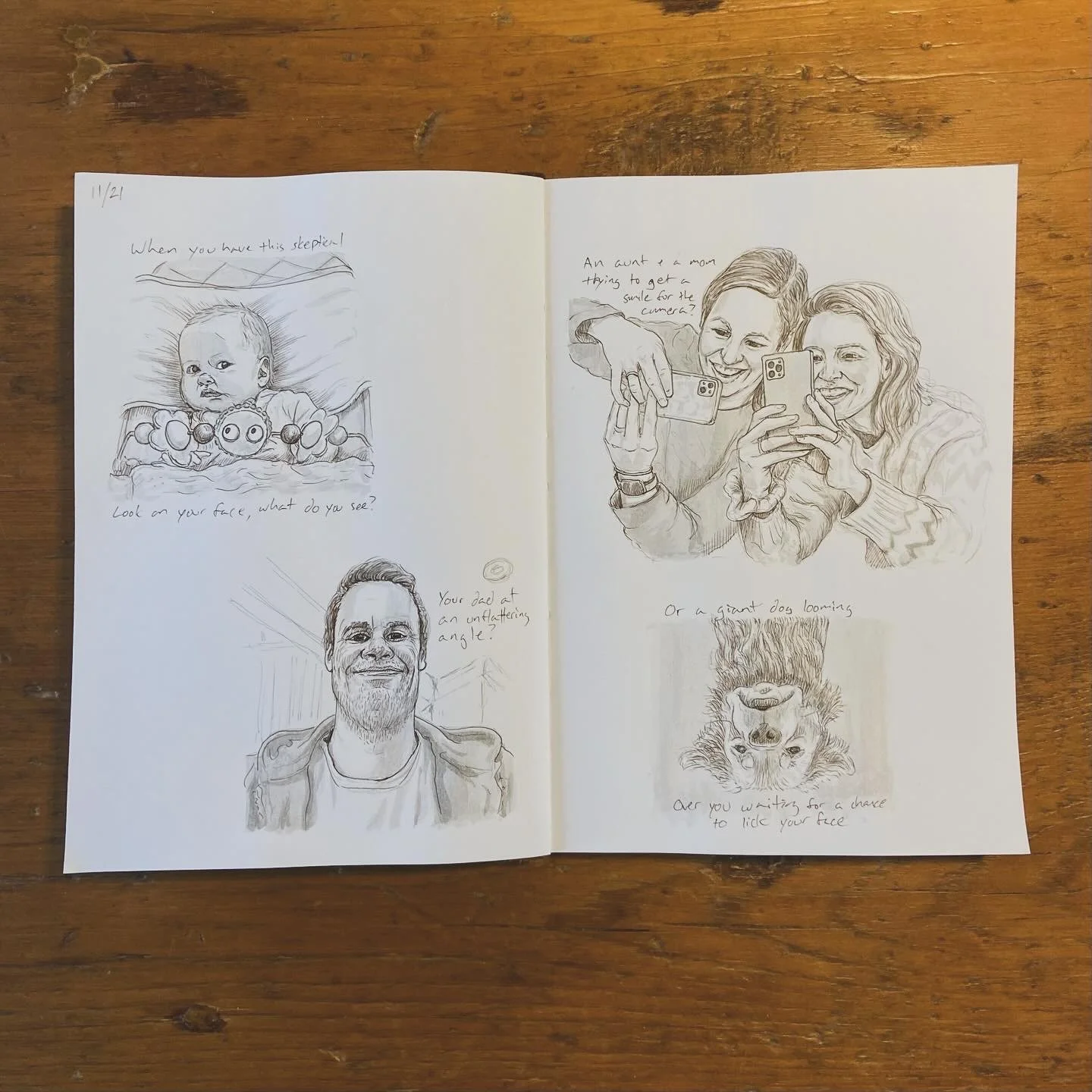 When our daughter Nell was born, my wife, Elizabeth, gave me a sketchbook to fill with memories of our first year as a family. I took to the task with gusto, and I have spent the first 11 months of her life filling pages with sketches of her ever-changing face and the people and places we’ve seen along the way.